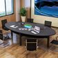 Bàn Họp YCHIMT011 là mẫu bàn họp hình Oval đang ngày càng được lựa chọn nhiều trong thời gian gần đây vì tính thẩm mỹ, thiết kế độc đáo của nó và phù hợp mọi không gian khác nhau. Nếu tính về thẩm mỹ thì nó mang lại sự nhẹ nhàng, uyển chuyển khiến không gian trở nên được ổn định hơn. Còn tính trên mặt bằng lợi ích thì nó giúp cân bằng quyền lực của những thành viên tham dự buổi họp bởi một chiếc bàn họp Oval đơn thuần không có vị trí trung tâm nên mọi người sẽ bình đẳng để đưa ra ý kiến cũng như quyết định của mình.