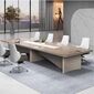 Bàn Họp YCHIMT041 có chân bàn là bộ khung gỗ, giúp gia tăng tính sang trọng, thẩm mỹ của sản phẩm. Chất liệu gỗ công nghiệp MDF cao cấp phủ Melamine bền màu, chống ẩm là yếu tố quyết định đến chất lượng vượt trội cũng như vẻ đẹp xuất sắc của sản phẩm. Thêm vào đó là mặt bàn dày, càng mang lại cho sản phẩm một kết cấu cực kì bền bỉ, mạnh mẽ được nhiều khách hàng yêu thích.