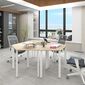 Bộ Bàn Làm Việc Không Gian Portable Space YCHIPS003 (Module 4 Kiểu 3) có kiểu dáng hiện đại, thiết kế mặt bàn hình thang cho phép người dùng có thể lắp ghép từ các bàn đơn lẻ thành cụm bàn có kích thước, hình dáng khác nhau tùy vào quy mô và mục đích sử dụng. Mặt bàn gỗ MDF phủ Melamine được xử lý và hoàn thiện chống thấm nước, kết hợp chân bàn sắt Oval được hàn cố định chắc chắn có khả năng chịu lực tốt, khung chân được phủ lớp sơn tĩnh điện chống rỉ sét, yên tâm sử dụng trong thời gian dài.
