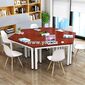 Bộ Bàn Làm Việc Không Gian Portable Space YCHIPS010 (Module 8 Kiểu 1) có kiểu dáng hiện đại, thiết kế mặt bàn hình thang cho phép người dùng có thể lắp ghép từ các bàn đơn lẻ thành cụm bàn có kích thước, hình dáng khác nhau tùy vào quy mô và mục đích sử dụng. Mặt bàn gỗ MDF phủ Melamine được xử lý và hoàn thiện chống thấm nước, kết hợp chân bàn sắt Oval được hàn cố định chắc chắn có khả năng chịu lực tốt, khung chân được phủ lớp sơn tĩnh điện chống rỉ sét, yên tâm sử dụng trong thời gian dài.