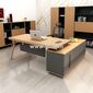 Bàn Quản Lý Không Gian Time Space YCHIDS002 sở hữu kiểu dáng hiện đại, thiết kế thông minh mang đến không gian ngồi làm việc rộng rãi, thoải mái cho lãnh đạo. Kết cấu bàn giám đốc gồm kệ tủ phụ chắc chắn, nhiều ngăn đa năng kết hợp với khối bàn chính thanh thoát, trẻ trung nhưng không kém phần sang trọng, đẳng cấp. Điểm đặc biệt của không gian Time Space là phần chân bàn bằng gỗ được nối với mặt bàn bằng khớp gắn sắt sơn tĩnh điện cực kì chắc chắn, nhưng lại dễ dàng tháo lắp, vận chuyển.
