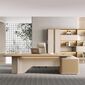 Bàn Quản Lý YCHIMD100 có toàn bộ thân bàn được sản xuất từ gỗ công nghiệp MDF phủ Melamine, nên bàn vừa có kết cấu chắc chắn vừa có tính thẩm mỹ rất cao. Bàn lãnh đạo gỗ này là một siêu phẩm đang rất được ưa chuộng hiện nay tại nội thất YCHI. Bàn được thiết kế thông minh, kiểu dáng thanh lịch phù hợp với cả sếp nam và nữ. Sản phẩm có kiểu dáng hình chữ L, có tủ liền vô cùng tiện lợi. Bàn có kích thước tương đối lớn mang lại không gian làm việc rộng rãi, thoải mái cũng như tạo nên sự quyền lực cho người lãnh đạo.