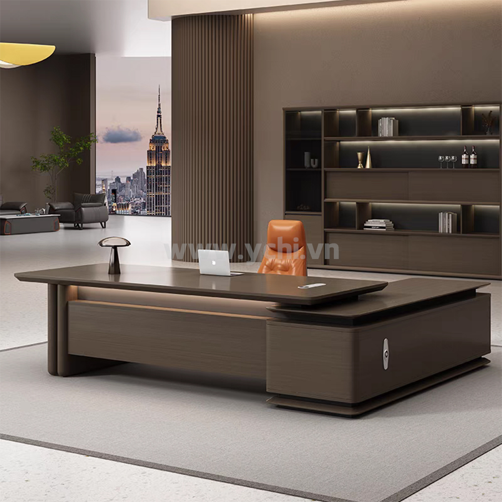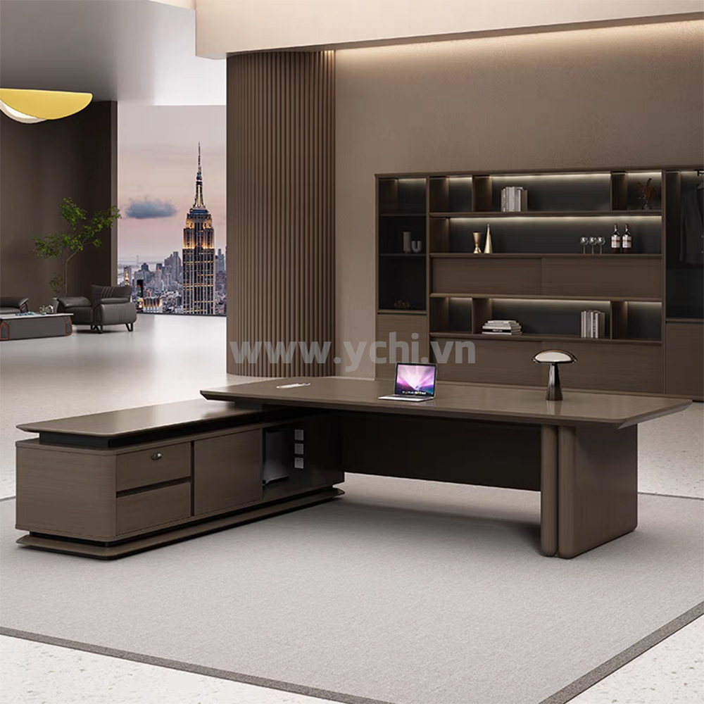 Bàn Quản Lý YCHIMD102 là biểu tượng của sự hòa quyện giữa vẻ đẹp đương đại và tính ứng dụng tối đa. Với việc sử dụng chất liệu MDF cao cấp, bề mặt bàn được hoàn thiện một cách tỉ mỉ và trau chuốt, tạo nên sự mịn màng và đồng đều. Đường nét của bàn được thiết kế cẩn thận, tạo ra không gian làm việc sang trọng và chuyên nghiệp. Khả năng chịu lực và độ bền vững của bàn giám đốc gỗ MDF không chỉ đáp ứng nhu cầu sử dụng mà còn làm tôn lên vẻ đẹp và phong cách trong môi trường làm việc.
