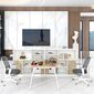 Cụm Bàn Làm Việc 2 Người Không Gian Atom Space YCHIAS004 có mặt bàn và chân tủ được làm từ gỗ MDF phủ Melamine cho bề mặt sản phẩm rất đẹp mắt, chống nước. Kết hợp hệ khung chân thép sơn tĩnh điện chống ăn mòn hoá học, đảm bảo độ bền cao.
