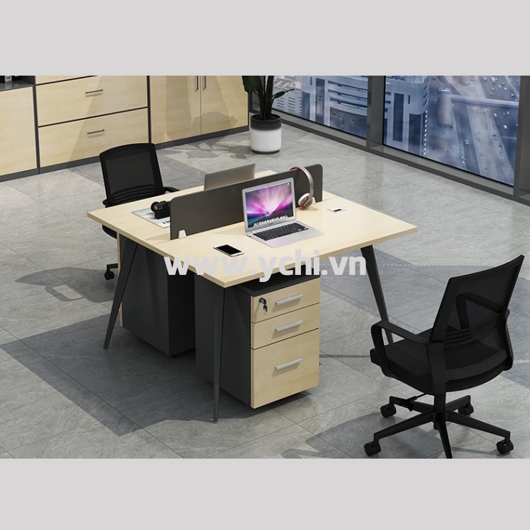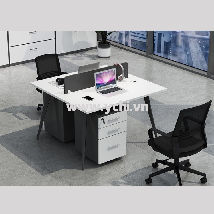 Cụm Bàn Làm Việc 2 Người Không Gian Cone Space YCHICS002 với chân thép sơn tĩnh điện, lắp ráp ngàm chắc chắn, kết hợp với mặt bàn được làm từ gỗ tiêu chuẩn. Bàn có thiết kế cổ điển với kích thước tiêu chuẩn phù hợp với mọi loại ghế văn phòng, phù hợp với nhiều không gian văn phòng.