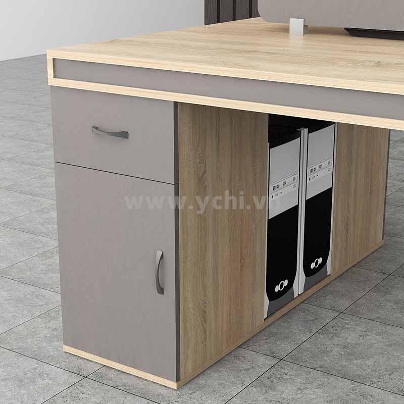 Cụm Bàn Làm Việc 2 Người Không Gian Elegant Space YCHIHS002 mang phong cách hiện đại, thiết kế sáng tạo với phần khung bo cong các góc mềm mại, làm cho không gian văn phòng trở nên sang trọng, lịch lãm, đẳng cấp. Đặc biệt, thiết kế mang đến sự hoàn hảo trong không gian sử dụng của từng nhân viên với đầy đủ hệ tủ liền bàn cho một không gian lưu trữ lớn.