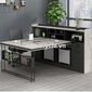 Bàn bao gồm: tủ 1 mặt bên cạnh bàn, 1 vách ngăn, lỗ dẫn điện trên mặt bàn