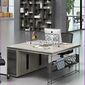 Bàn bao gồm: 1 tủ 2 mặt dưới bàn, 1 vách ngăn, lỗ dẫn điện trên mặt bàn