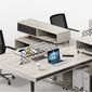 Cụm Bàn Làm Việc 4 Người Không Gian Cone Space YCHICS018 với chân thép sơn tĩnh điện, lắp ráp ngàm chắc chắn, kết hợp với mặt bàn được làm từ gỗ tiêu chuẩn. Bàn có thiết kế hiện đại với kích thước tiêu chuẩn phù hợp với mọi loại ghế văn phòng, phù hợp với nhiều không gian văn phòng. Bàn có tủ liền với mặt bàn, giúp dễ dàng lưu trữ vật dụng của mỗi nhân viên. Thêm vào đó là mặt bàn dày 10cm, cho một kết cấu chắc chắn, sang trọng.