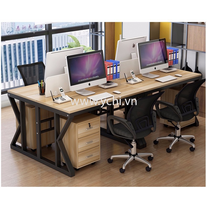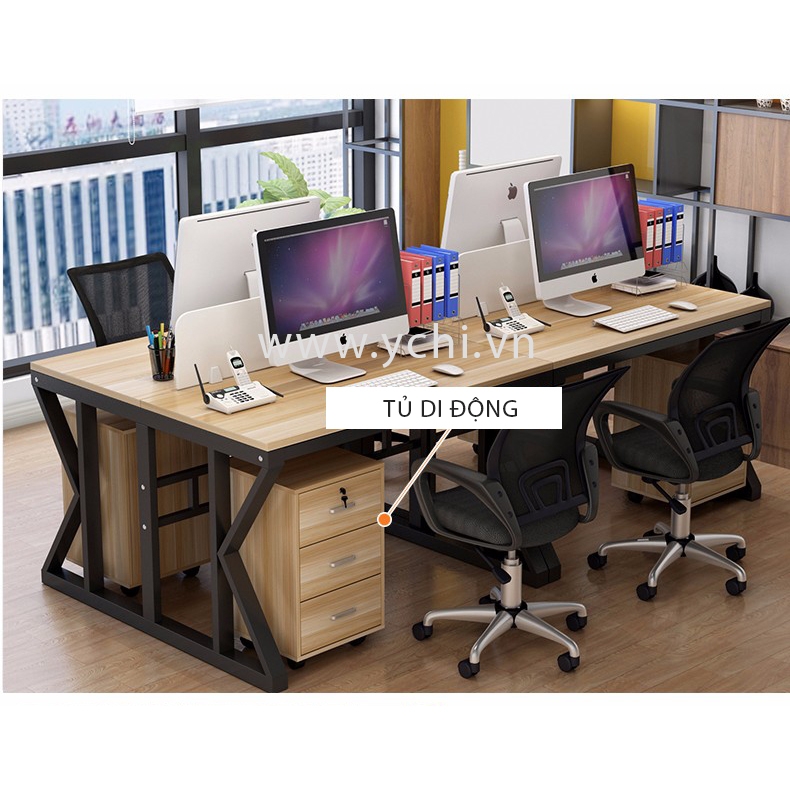 Cụm Bàn Làm Việc 4 Người Không Gian K Space YCHIKS004 với mặt bàn và chân tủ được làm từ gỗ MDF phủ Melamine cho bề mặt sản phẩm rất đẹp mắt, chống nước. Kết hợp hệ khung chân thép sơn tĩnh điện chống ăn mòn hoá học, đảm bảo độ bền cao.