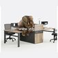 Bàn kết hợp với tủ liền thân bàn vừa cho một thiết kế hiện đại, vừa mang lại tiện ích sử dụng cao. Phần tủ gồm đủ ngăn tủ, ngăn kéo, kệ chứa hồ sơ nhỏ, tối ưu hóa tối đa góc làm việc của mỗi nhân viên. Đặc biệt cách điệu phần vách ngăn truyền thống hay gặp của bàn cụm thành kệ treo, vừa tiện dụng, vừa thẩm mỹ, có thể để hồ sơ hoặc các đồ trang trí nhỏ, mang lại năng lượng làm việc tích cực.