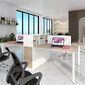 Cụm Bàn Làm Việc 4 Người Không Gian Oval Space YCHIOS015 có kiểu dáng nhỏ gọn, tối ưu diện tích hiệu quả là giải pháp thông minh cho không gian văn phòng hiện đại. Mẫu bàn làm việc có mặt bàn được làm bằng gỗ MDF phủ Melamine bền đẹp, cùng với đó là bộ khung bằng thép sơn tĩnh điện chắc chắn, chống ăn mòn hóa học, độ bền cao, cho bạn không gian thoải mái làm việc.