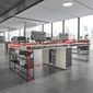 Cụm Bàn Làm Việc 4 Người Không Gian Rainbow Space YCHIRS013 mang phong cách hiện đại, thiết kế sáng tạo với phần khung chân đan chéo tỉ mĩ, làm cho không gian văn phòng trở nên sang trọng, lịch lãm, đẳng cấp. Đặc biệt, thiết kế mang đến sự hoàn hảo trong không gian sử dụng của từng nhân viên với đầy đủ tủ treo kéo dài, cùng với kệ, ngăn kéo cho một không gian lưu trữ lớn.
