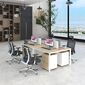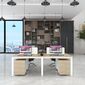Cụm Bàn Làm Việc 4 Người Không Gian Triangle Space YCHITS005 với mặt bàn gỗ MDF phủ Melamine màu gỗ tự nhiên luôn có một vẻ đẹp riêng. Khung chân thép sơn tĩnh điện với cơ cấu ngàm lắp ráp dễ dàng, tiện dụng nhưng vẫn chắc chắn.