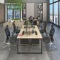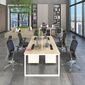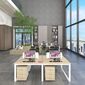Cụm Bàn Làm Việc 4 Người Không Gian Triangle Space YCHITS006 với mặt bàn gỗ MDF phủ Melamine màu gỗ tự nhiên luôn có một vẻ đẹp riêng. Khung chân thép sơn tĩnh điện với cơ cấu ngàm lắp ráp dễ dàng, tiện dụng nhưng vẫn chắc chắn.
