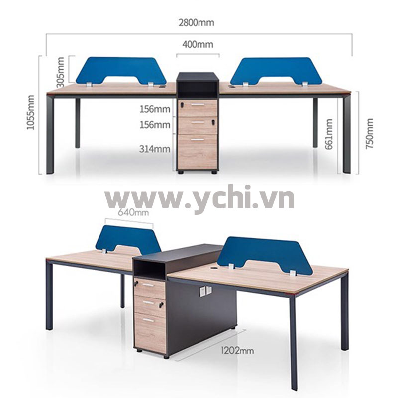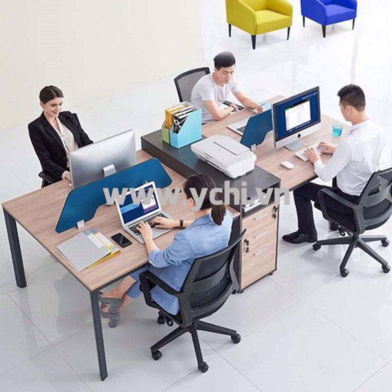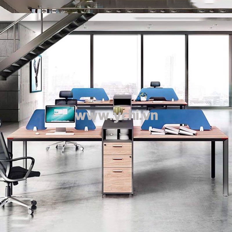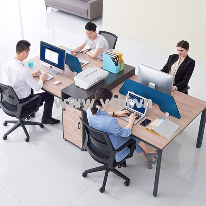 Cụm Bàn Làm Việc 4 Người Không Gian Triangle Space YCHITS015 với mặt bàn gỗ MDF phủ Melamine màu gỗ tự nhiên luôn có một vẻ đẹp riêng. Khung chân thép sơn tĩnh điện với cơ cấu ngàm lắp ráp dễ dàng, tiện dụng nhưng vẫn chắc chắn.