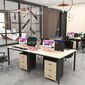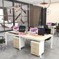 Cụm Bàn Làm Việc 4 Người Không Gian U Space YCHIUS003 mang phong cách hiện đại, thiết kế cổ điển, vuông vức, làm cho không gian văn phòng trở nên sang trọng, lịch lãm, đẳng cấp. Đặc biệt, thiết kế mang đến sự hoàn hảo trong không gian sử dụng, có thể kết hợp với tủ di động để tối ưu không gian lưu trữ.