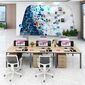 Bàn Làm Việc Cụm 6 Người Không Gian Triangle Space YCHITS009 với mặt bàn gỗ MDF phủ Melamine màu gỗ tự nhiên luôn có một vẻ đẹp riêng. Khung chân thép sơn tĩnh điện với cơ cấu ngàm lắp ráp dễ dàng, tiện dụng nhưng vẫn chắc chắn.