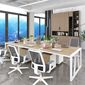 Bàn Làm Việc Cụm 6 Người Không Gian V Space YCHIVS004 với mặt bàn và chân tủ được làm từ gỗ MDF phủ Melamine cho bề mặt sản phẩm rất đẹp mắt, chống nước. Kết hợp hệ khung chân thép sơn tĩnh điện chống ăn mòn hoá học, đảm bảo độ bền cao.