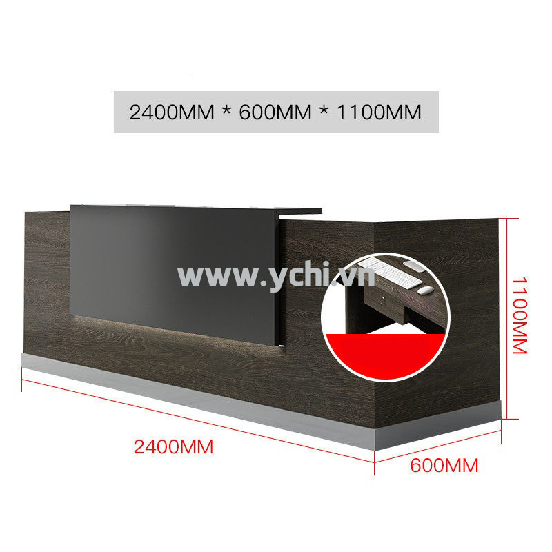 Quầy Lễ Tân YCHIRT017 có nhiều kích thước khác nhau và nhiều màu sắc để khách hàng quyết định. Bảng màu sắc được cập nhật thường xuyên đảm bảo bắt kịp xu hướng nội thất mới. Đội ngũ nhân viên tư vấn chuyên nghiệp của YCHI luôn sẵn sàng hỗ trợ khách hàng, đưa ra những lời khuyên hữu ích để bạn có sản phẩm ưng ý nhất. Liên hệ Zalo bên cạnh hoặc gọi trực tiếp Hotline 0909 777 426, YCHI luôn sẵn sàng giải đáp các câu hỏi của khách hàng.
