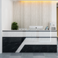 Quầy Lễ Tân YCHIRT026 cho một không gian thanh lịch, đầy sự tin tưởng từ khách hàng và thể hiện sự chuyên nghiệp. Quầy mang phong cách hiện đại và cực kì đơn giản. Không mang trên mình quá nhiều họa tiết, quầy chỉ được tạo bởi điểm nhấn đường nét, mảng cắt đơn giản. Nhưng khi được kết hợp với nhau sẽ là một điểm thu hút cho mọi ánh nhìn. Quầy tiếp tân mang cho mình kiểu chữ L thông dụng. Mẫu quầy được thiết kế đơn giản với sơn trắng cao cấp được phủ bên ngoài.