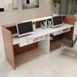 Quầy Lễ Tân YCHIRT033 có bên trong được thiết kế dành cho từ 1-2 nhân viên lễ tân sử dụng thoải mái và tiện lợi nhất. Tuy thiết kế theo kiểu chữ I đơn giản, nhưng sẽ rất thuận tiện cho lễ tận thuận tiên ra vào. Với vị trí tiếp khách và hướng dẫn thì đây mẫu bàn này rất phụ hợp. Chất liệu gỗ công nghiệp MDF phủ melamine giúp cho sản phẩm chống thấm, bền màu, chống cong vênh, bền bỉ khi sử dụng.