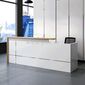 Quầy Lễ Tân YCHIRT037 có bên trong được thiết kế dành cho từ 1-2 nhân viên lễ tân sử dụng thoải mái và tiện lợi nhất. Sử dụng chất liệu gỗ công nghiệp cao cấp, khả năng chống ẩm mốc tốt, không lo mục ruỗng theo thời gian sử dụng đồng thời tạo vệ sinh lau chùi dễ dàng. Ấn tượng với sự phối hợp hai tông màu sáng và tối; mặt phía trước ốp gỗ và thanh nẹp trang trí vô cùng sang trọng và thanh lịch, khách hàng có thể nhìn thấy chúng trước khi quan sát xung quanh.