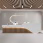 Quầy Lễ Tân YCHIRT069 có bên trong được thiết kế dành cho từ 1-2 nhân viên lễ tân sử dụng thoải mái và tiện lợi nhất. Sử dụng chất liệu gỗ công nghiệp cao cấp, khả năng chống ẩm mốc tốt, không lo mục ruỗng theo thời gian sử dụng đồng thời tạo vệ sinh lau chùi dễ dàng. Ấn tượng với sự phối hợp hai tông màu sáng và tối; mặt phía trước ốp gỗ và thanh nẹp trang trí vô cùng sang trọng và thanh lịch, khách hàng có thể nhìn thấy chúng trước khi quan sát xung quanh.