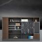 Tủ Giám Đốc YCHIDC042 được thiết kế nhiều khoang tủ và nhiều ngăn nhỏ tiện cho việc phân loại tài liệu, hồ sơ. Phần trên là các ngăn tủ nhỏ để sách báo, tài liệu sử dụng thường xuyên, mang lại sự thuận tiện cho người dùng. Phần dưới chia làm nhiều khoang tủ đa năng, có cánh tủ kèm khóa bảo mật, an toàn hơn khi lưu trữ tài liệu quan trọng. Tủ được thiết kế hiện đại, phần bản lề linh hoạt, tay nắm chắc chắn dễ dàng đóng mở mà không gây ra tiếng ồn. Tủ để tài liệu gỗ đa dạng màu sắc, tính thẩm mỹ cao nên gây được sự chú ý lớn từ phía khách hàng. Khách hàng cũng có thể tùy ý lựa chọn mẫu vân gỗ có tại YCHI theo sở thích và xu hướng nội thất của không gian sử dụng.