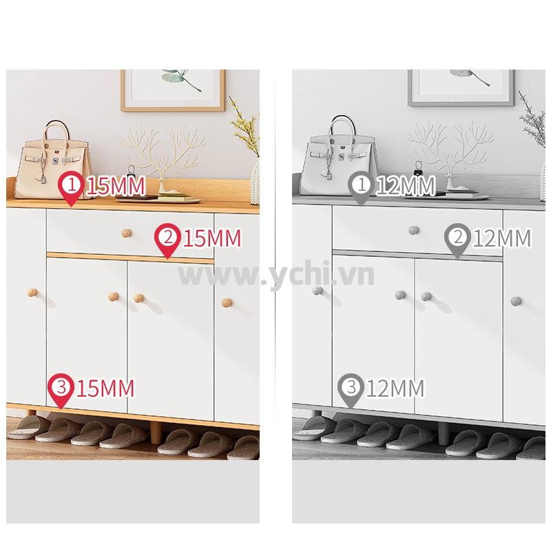 Bạn có thể tự mình quyết định màu sắc và kiểu vân gỗ của mẫu tủ giày. YCHI cung cấp cho khách hàng nhiều lựa chọn khác nhau về màu sắc, kiểu vân gỗ. Vì thế, bạn có thể tự mình lựa chọn và thay đổi màu sắc của mẫu tủ giày theo sở thích và phong cách nội thất của gia đình. YCHI hy vọng rằng, mọi vị khách đều có thể chọn lựa được mẫu tủ giày vừa ý nhất cho gia đình.