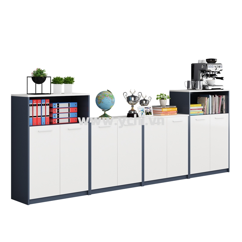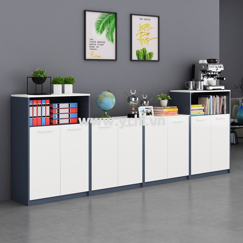 Bộ Tủ Hồ Sơ Thấp YCHIFC002 có mặt tủ và cửa được làm từ gỗ MDF phủ Melamine cho bề mặt sản phẩm rất đẹp mắt, chống nước, chống mối mọt. Tủ có nhiều ngăn, nhiều tầng, đa dụng, kích thước phù hợp với nhiều loại kẹp hồ sơ, sách, tạp chí...