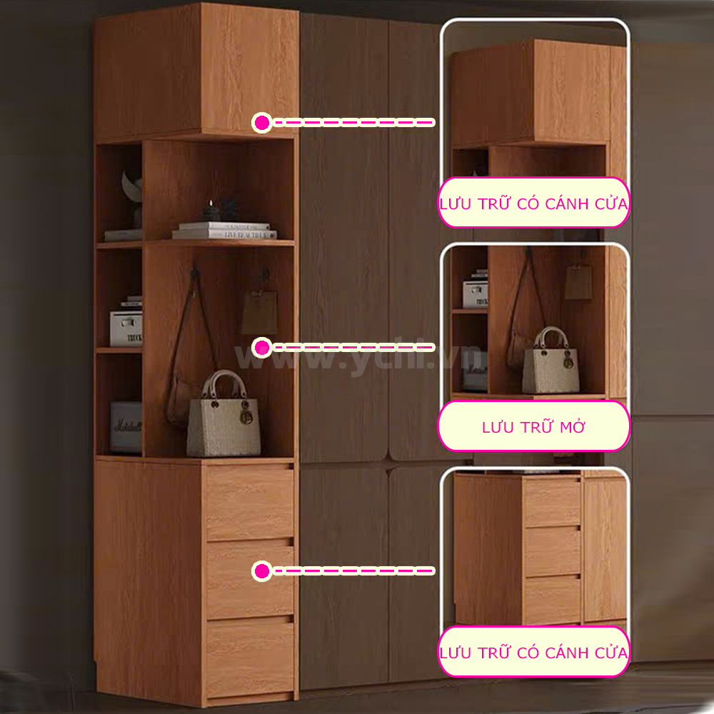 Chi tiết sản phẩm Tủ Quần Áo Vân Gỗ Tự Nhiên YCHIWB103