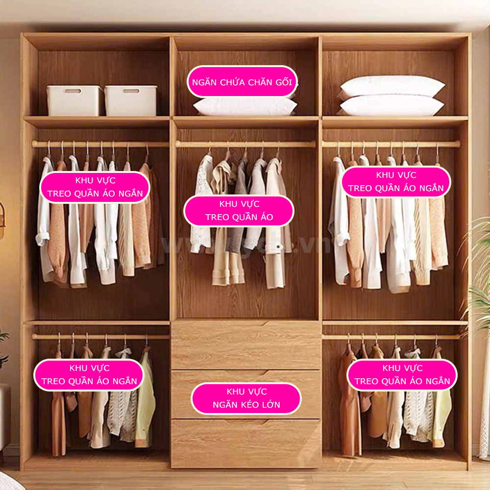 Chi tiết sản phẩm Tủ Quần Áo Vân Gỗ Tự Nhiên YCHIWB106