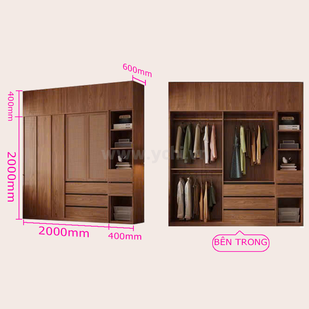 Chi tiết sản phẩm Tủ Quần Áo Vân Gỗ Tự Nhiên YCHIWB117